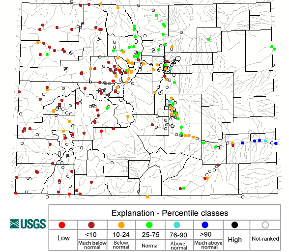 The map below shows radar-estimated, rainfall gage-adjusted Quantitative Precipitation Estimates (QPE) across Colorado. The map is updated daily during the operational season (May 1 – Sep 30) by 11AM. The following six layers are currently available: 24-hour, 48-hour and 72-hour total precipitation, as well as maximum 1-hour, 2-hour and 6-hour precipitation over the past 24 hour period (to estimate where flash flooding may have occurred). The 24-hour, 48-hour and 72-hour total precipitation contain bias corrections that are not disaggregated into the hourly estimates, so there will likely be some differences. The accumulation ending time is 6AM of the date shown in the bottom right corner. Also shown optionally are fire burn areas (post 2012), which are updated throughout the season to include new burn areas. The home button in the top left corner resets the map to the original zoom.