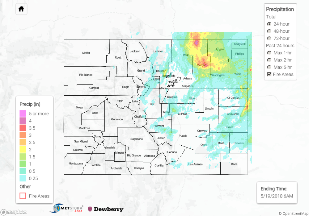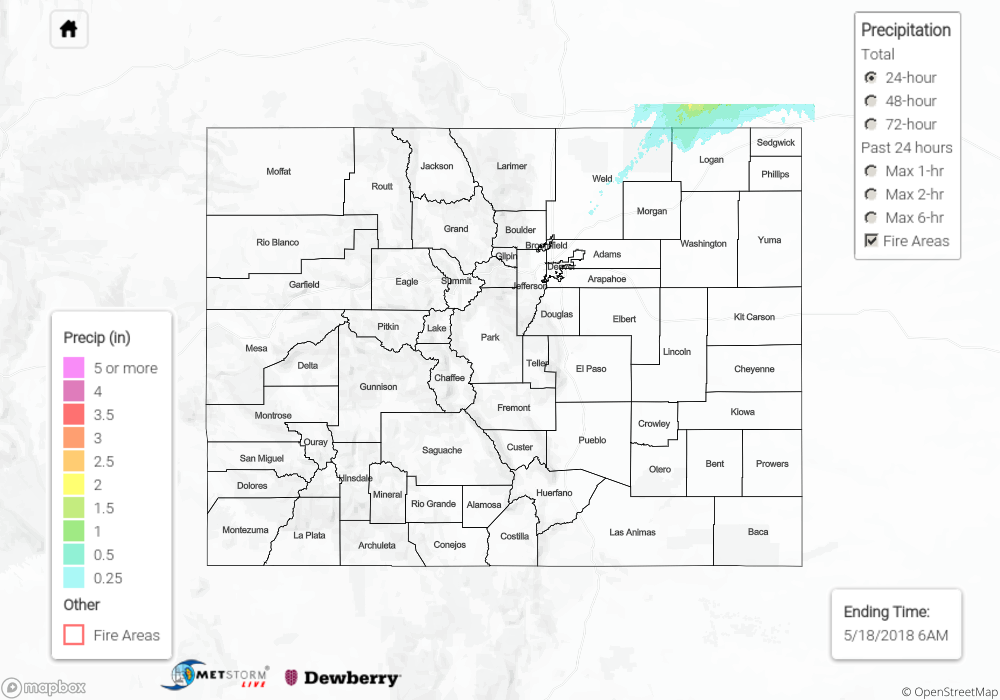 Numerous showers and an isolated thunderstorm or two continue across portions of the Front Range, Urban Corridor, Palmer Ridge, Northeast Plains, and Southeast Plains this morning. For a look at precipitation estimates in your area, please see our State Precipitation Map below.