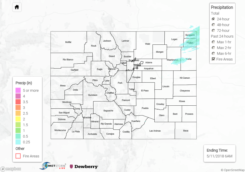 A few light rain showers continued this morning across the higher terrain of the Northwest Slope, where surface moisture convergence, orographic effects, and upper-level support have kept the activity going. Overall, rainfall was light due and virga was plentiful as the near-surface moisture remained a bit on the low side, with only brief periods of moderate rainfall underneath the strong thunderstorms in northeast Colorado.
