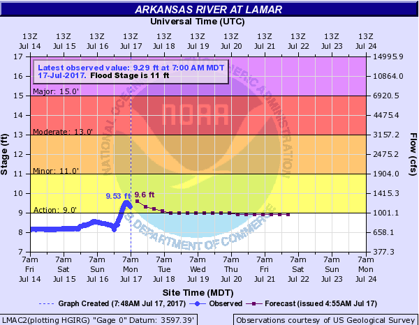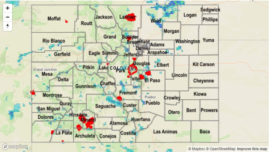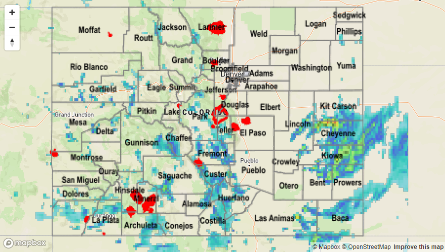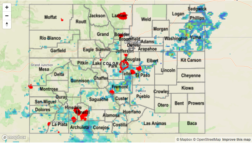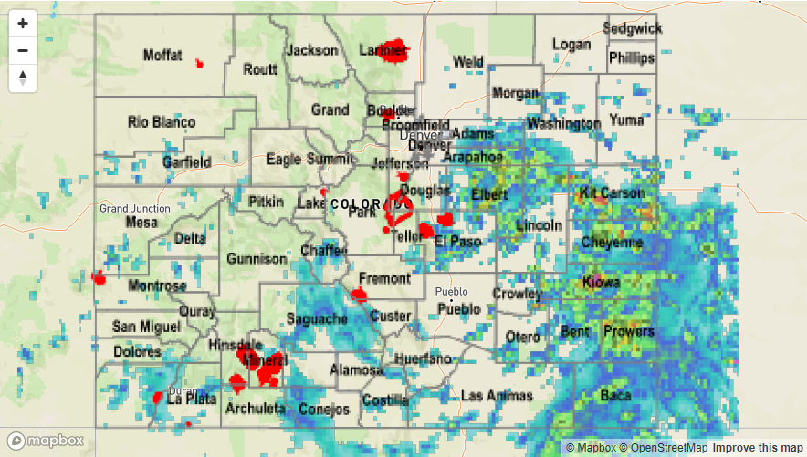 Precipitable Water (PW) ended up increasing dramatically over the entire eastern portion of the state yesterday afternoon. PW values were at least 1 inch and over 1.5 inches in the Northeast Plains. Convection occurred over the central and southern mountains, with 1 hour rain rates just over 0.5 inches with Silverton reporting 0.62 inches in one hour. Teller County reported 0.6 inches in 30 minutes. The highest total rainfall recorded value was over Clear Creek County with 1.1 inches in 3 hours. Radar estimates 3 hour totals of 2 inches. Small stream flooding occurred over Cotopaxi and Texas Creek in west Fremont County at 6:50 PM.