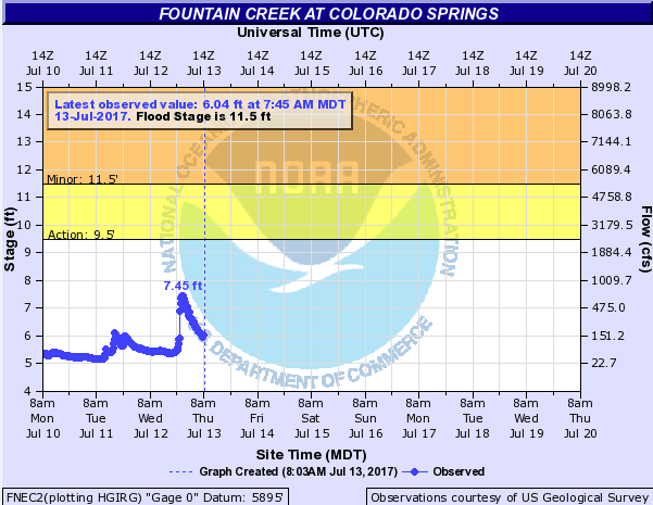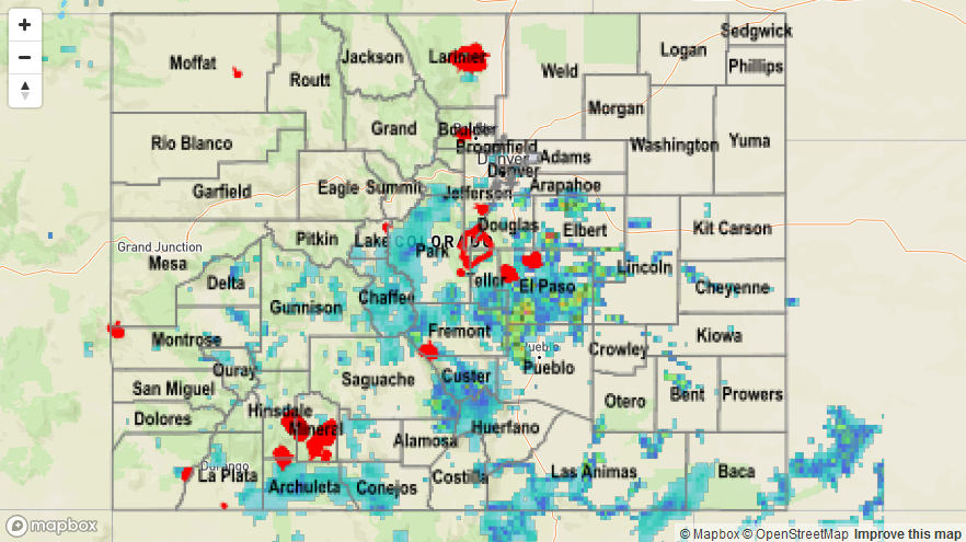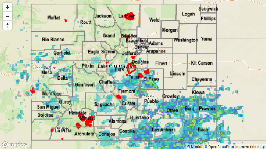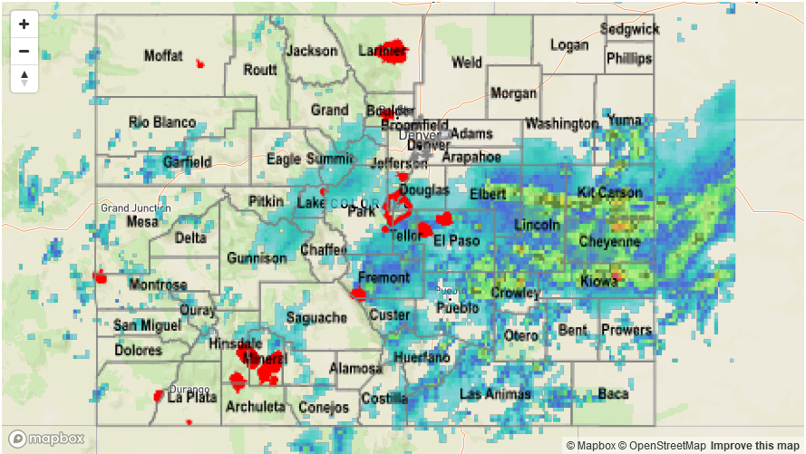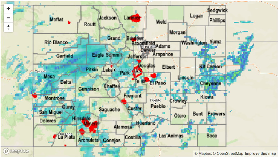 The upper-level ridge continued its residence over the region, but was once again out-matched by the moisture underneath with the help of a mid-level disturbance. Precipitable water values remained greater than 1 inch for much of Southeastern Colorado, and this helped to fuel efficient rainfall from thunderstorms. As for observational “ground truth,” there were a few heavy rain reports submitted to the National Weather Service yesterday: