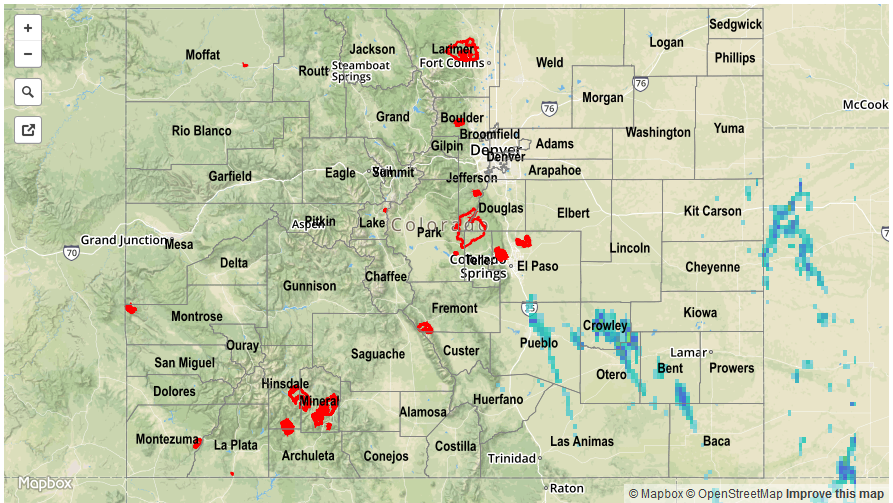 Hot weather continued to the west of the Continental Divide with a ridge axis overhead promoting plenty of sunshine and subsiding air. High temperatures of 5-10 F above normal were common, with many lower elevation locations topping out well above 90 F (Grand Junction hit 95 F). Significant snow melt was observed with 1 – 2 inches of snow water equivalent (SWE) melting or sublimating over the course of the day. For example, the Schofield Pass SNOTEL site in the Elk Mountains had 20.5 inches of SWE on Sunday morning but only 18.7 inches this morning. Fortunately, no snow-melt related flooding concerns were reported.