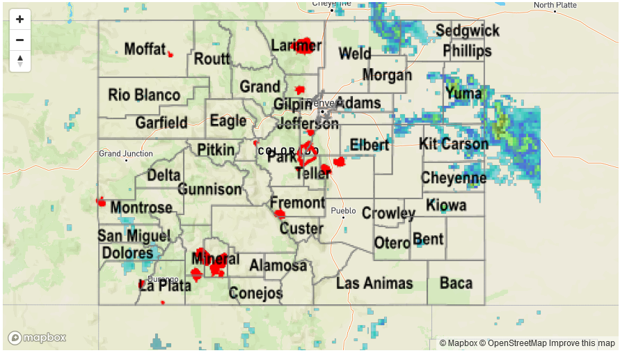 After a prolonged period of cool weather that seemed to last for weeks, temperatures continued to warm to summer levels on Wednesday. Coupled with an adequate supply of low-level moisture, this led to isolated to scattered showers and thunderstorms mainly across eastern areas. A few storms turned severe, producing hail up to 1.5 inches, and gusty winds. Another report of hail came in from near Yuma, where up to 3 inches of hail accumulated on Highway 34 requiring plow trucks to clear the road.