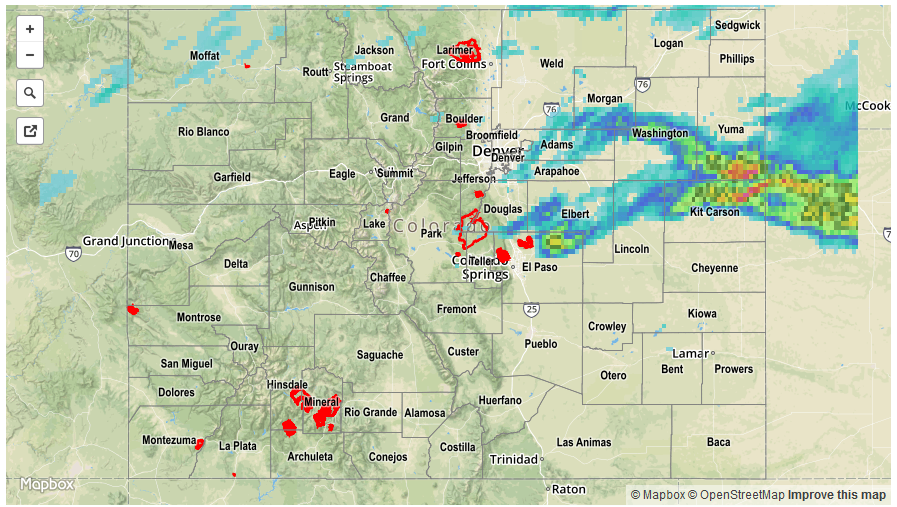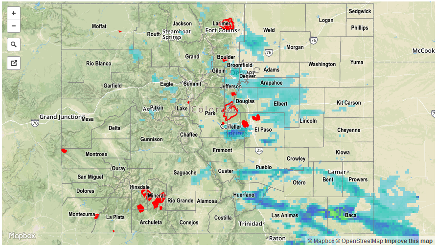 Instability and the potential for heavy rainfall was limited to southeast Colorado, where a lee-side circulation developed and helped advect the necessary moisture. Several rounds of showers and storms moved across the Palmer Ridge, Southeast Plains and Raton Ridge, causing isolated heavy rainfall as well as hail. The most impressive rainfall totals appear to be in Huerfano and Baca Counties where a few locations likely saw over 1.5 inches (highest rain gauge reading was 1.25 inches). Hail of 1.75 inch diameter was reported as a severe thunderstorm (that even briefly carried a tornado warning) developed over Otero County and then trekked southeastward.