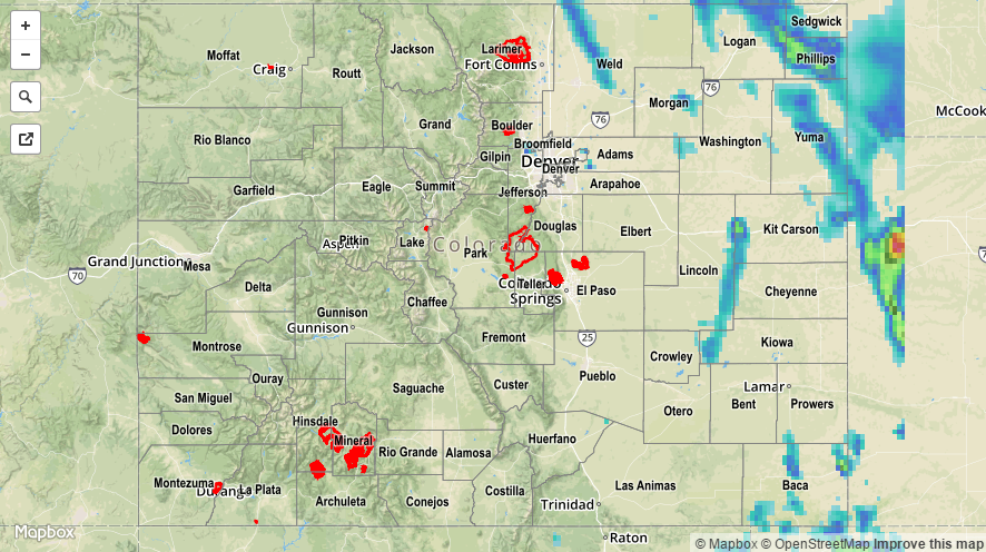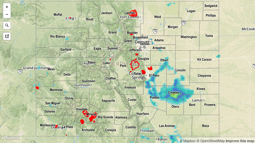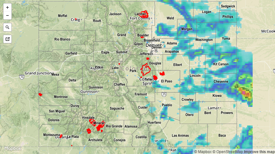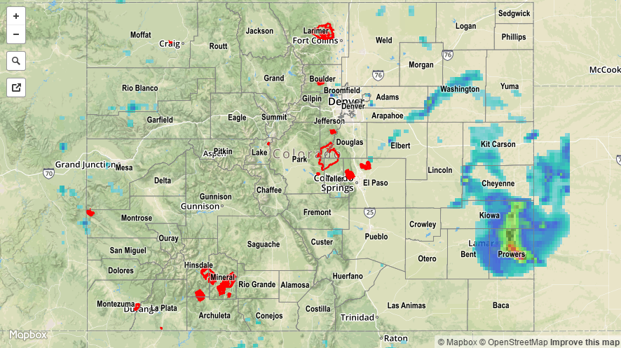 The High Country and Western Slope remained mainly dry yesterday as the atmosphere could only an isolated shower/weak thunderstorm or two. The main story over those areas were the hot temperatures, especially in the lower valleys. Further east, isolated strong/severe storms rumbled over the plains regions during the afternoon and through the overnight hours. Take a look at the severe storm observations reported to the National Weather Service: