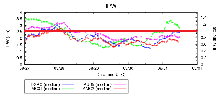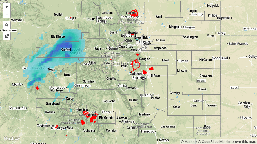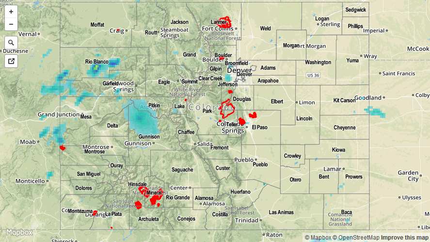 A slight push of moisture accompanied a weak monsoon disturbance yesterday afternoon and evening, bringing increased coverage of showers/thunderstorms to SW Colorado. Storms favored the higher terrain of the San Juan Mountains, Southwest Slope, and Grand Valley regions, but lower valleys received a few drops of rain as they drifted overhead. Activity continues this morning in those same regions, with generally light rain falling. East of the mountains, the environment stayed capped, leading to a mainly dry day with high temperatures that climbed well above average, once again. This morning, extensive cloud cover is in place across much of Colorado underneath the stream of monsoonal moisture.