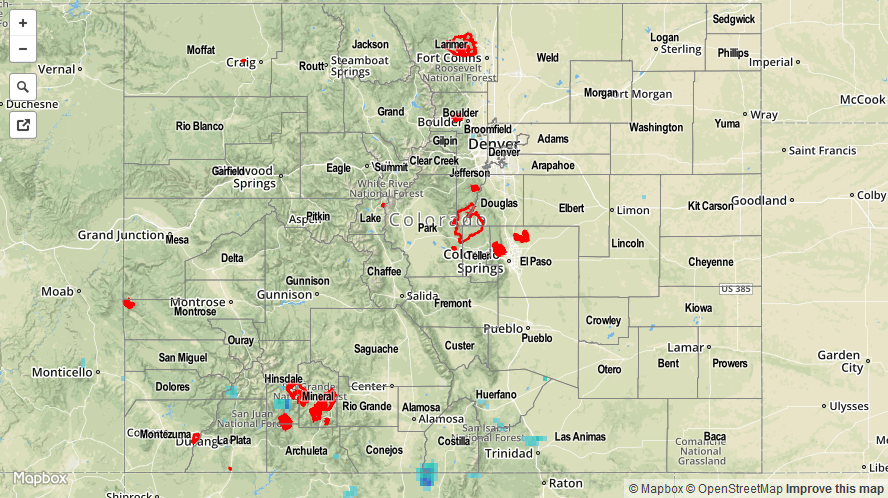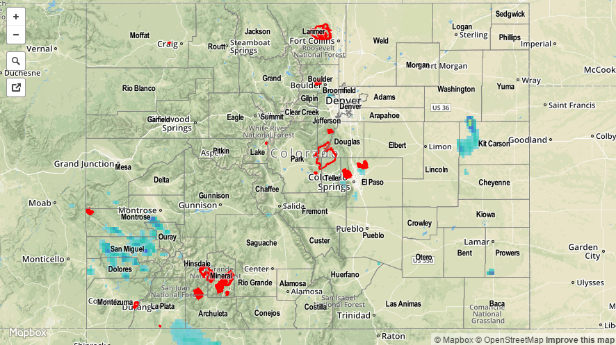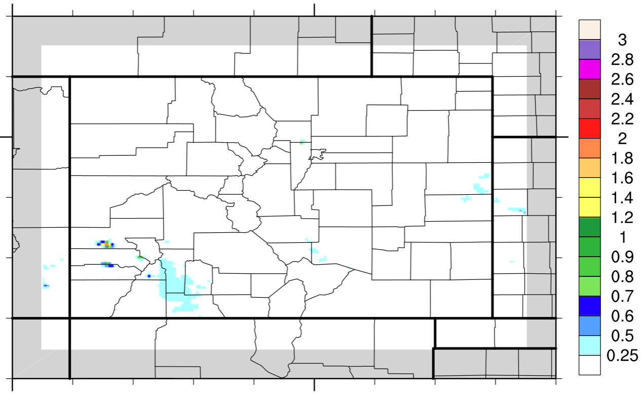 The upper-ridge shifted ever so slightly to the east yesterday, allowing more moisture to return to Colorado. The increase in moisture helped to fuel an uptick in thunderstorm coverage, as well as more efficient rainfall production to said thunderstorms. Brief, locally heavy rainfall was observed under the strongest storms, but no flash flooding issues were reported. From CoCoRaHS observers, the following counties were the big winners with rainfall reports: