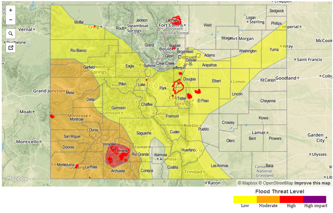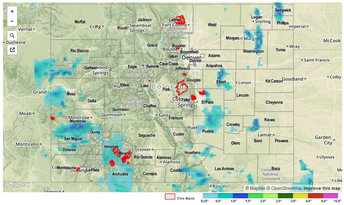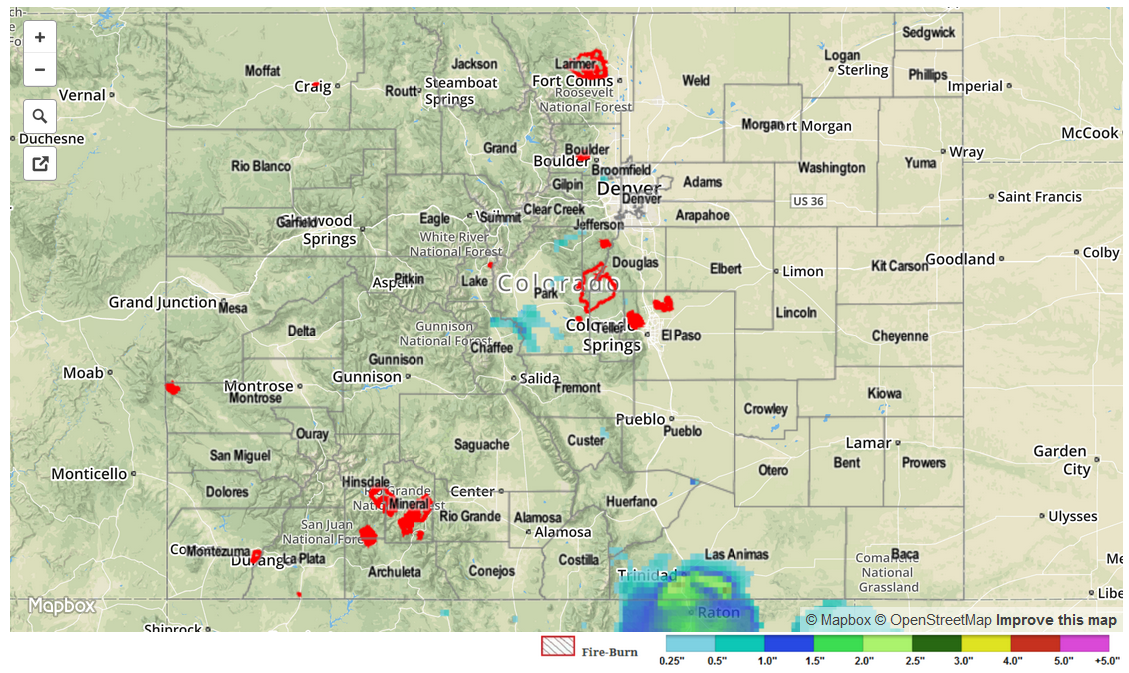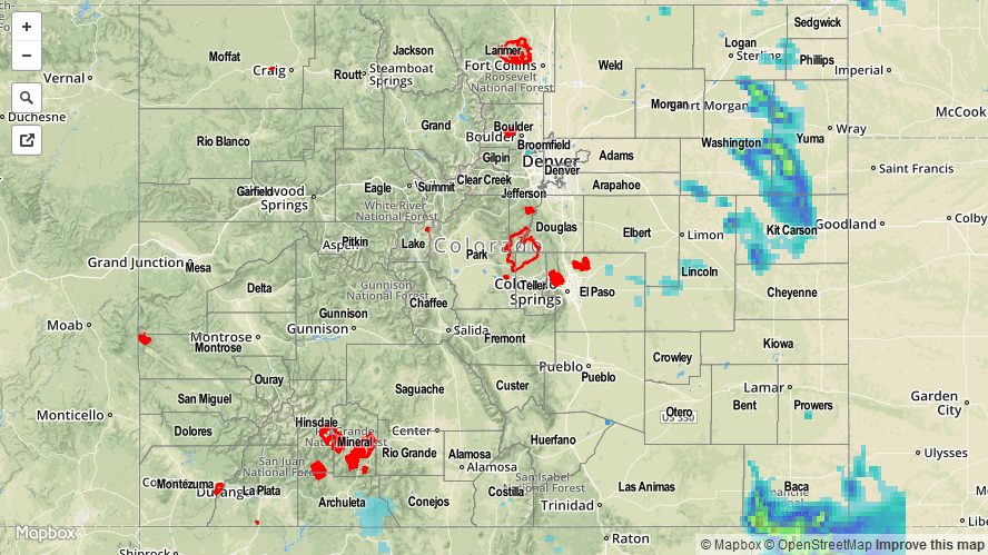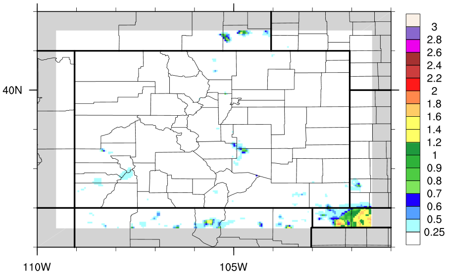 Another day of subtropical moisture invading the state produced isolated-to-scattered showers and thunderstorms. Most activity was confined along and near the mountains, thanks to a mid-level disturbance and orographic support. A surface trough oriented northeast-to southwest across the Northeastern Plains forced a few isolated thunderstorms, producing hail and brief heavy rain. No flash flooding was observed yesterday; a few flood advisories were issued by the National Weather Service, but no flooding issues were reported.