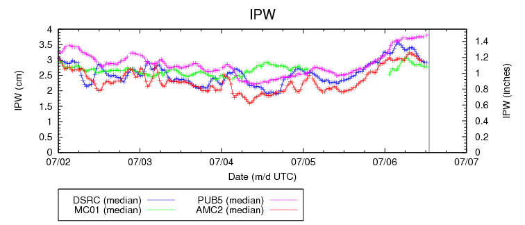 In the Grand Junction area, a few thunderstorms were able to maintain enough strength to develop hail. Many reports of pea-size hail were received, and even one report of 1 inch hail right in the vicinity of Grand Junction itself.