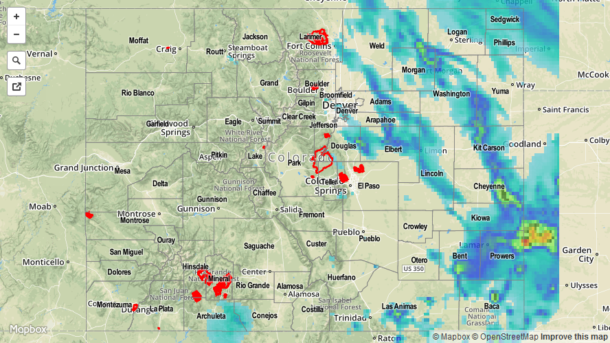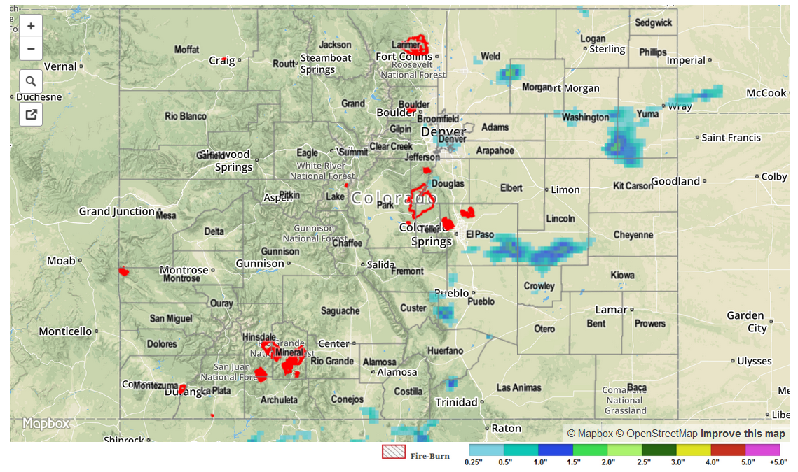An Areal Flood Advisory was issued for Teller and portions of Fremont County during the evening as a relatively slow moving thunderstorm drifted across the area. There were no flash flood reports in the area, however, and no other flash flooding was reported yesterday. As far as severe storm reports are concerned, the only report came in from Custer County; 1 inch hail fell in Rosita around 6 PM.