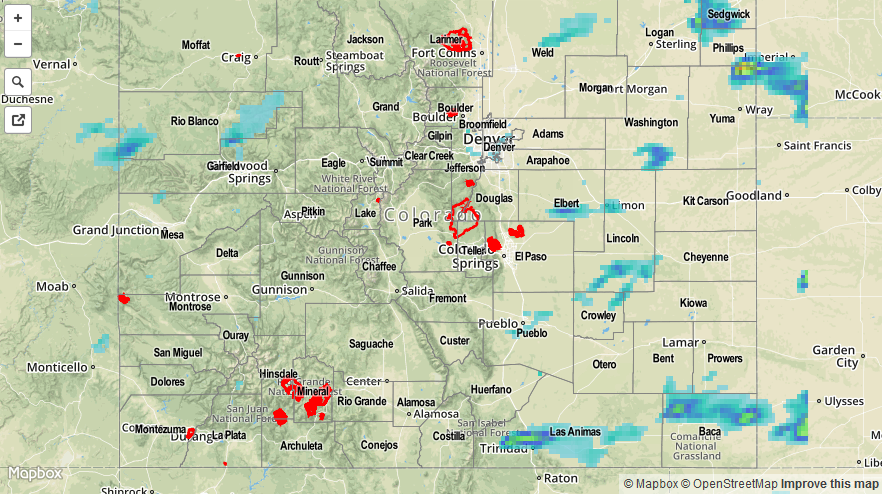 The tail end of a multi-day disturbance brought scattered showers and thunderstorms across Colorado on Friday. While most storms looked more intimidating than they actually were, several storms over the Palmer Ridge and Southeast Plains produced very heavy rainfall. Fortunately the rainfall was brief and did not cause any flooding problems. For example, an observer in El Paso county noted 0.25 inches fell in 6 minutes (the equivalent of 2.50 inches per hour). These storms were also responsible for several hail reports, up to 1 inch in diameter. In all, about a handful of 1+ inch rainfall amounts were noted across El Paso and Pueblo counties. Meanwhile, several rounds of mostly weak storms amounted to 0.5 to 0.9 inches of rainfall across Weld and Larimer counties. Aside from this action, most everyone else experienced less than 0.5 inches of rainfall.
