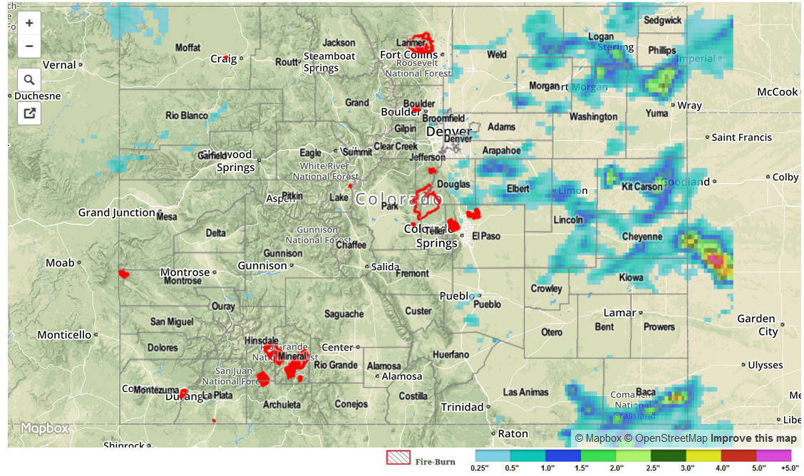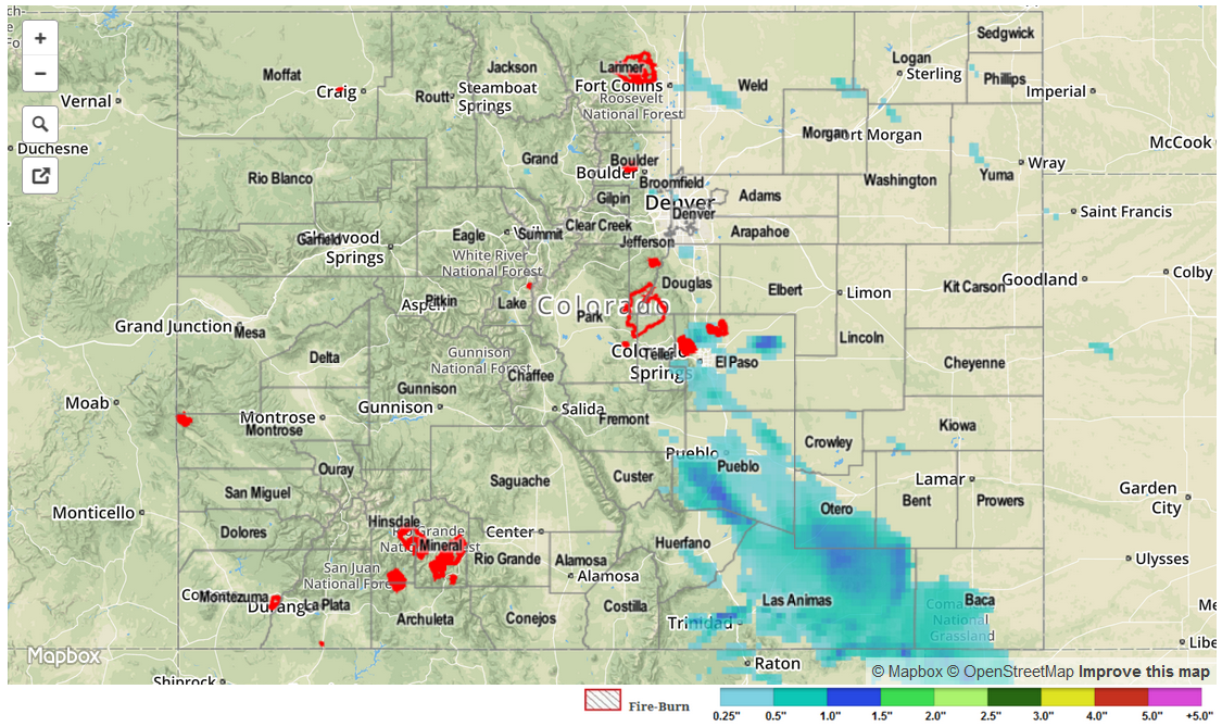 The South Platte River continued to subside below Minor flood stage. However, parts of the Arkansas River remained in Minor flood stage, receiving a short-term boost from yesterday’s rainfall in the upstream regions.