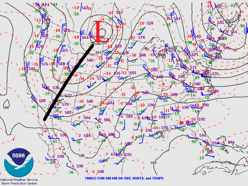The main axis of the trough has passed to the east, which will place the state under northwesterly/westerly flow aloft today as the ridge slides in from the west and begins to build over the state the next couple of days. Rising pressure with only minimal residual moisture remaining under the ridge (PW was measured at 0.43 inches at Denver) will keep the rainfall today limited to high-based showers and weak thunderstorms favoring the Northern Mountains, eastern San Juan Mountains and southern Front Range/Palmer Ridge intersect for development this afternoon. A couple additional weak storms may be possible over the far Northeast Plains late this afternoon, but should not become severe. Storms are anticipated to dissipate as they move off the mountains with the northwest steering flow. All storm activity is forecast to come to an end a couple hours after sundown as instability declines. As anticipated, flooding from rainfall is not forecast.