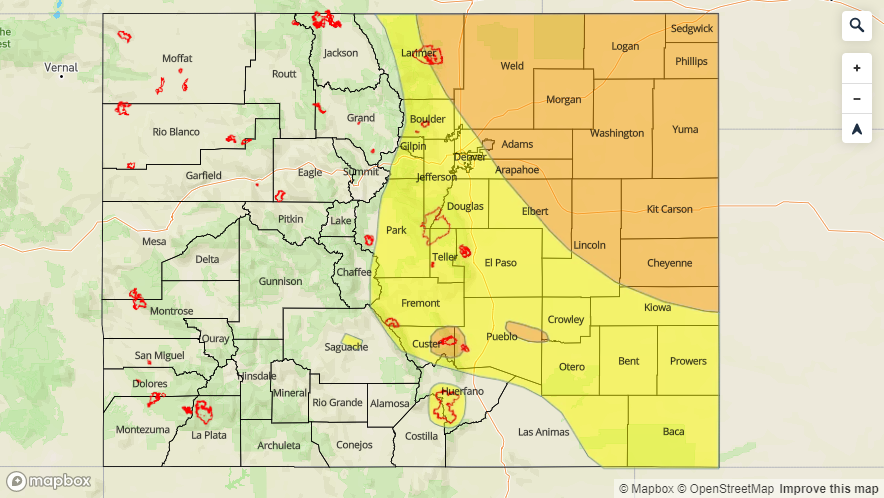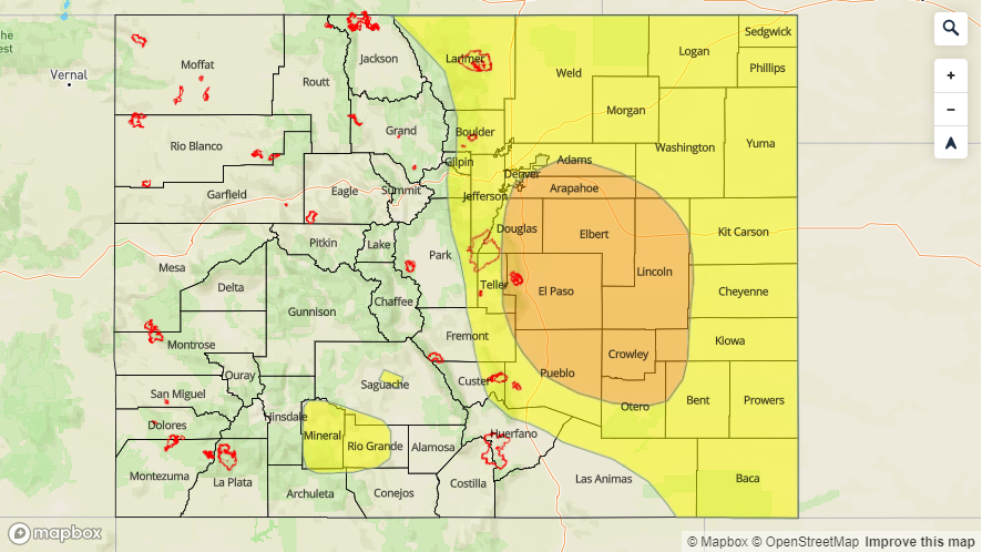 Best chance for rainfall today will be over San Juan Mountains and Southeast Mountains near the Divide. With dew points dropping off to below 30°F, more cloud cover is anticipated than rainfall. However, a couple storms may produce a sprinkle or two. Skies will begin to clear overnight as the southwest winds pull in a very dry air mass from Arizona and New Mexico. High temperatures similar to yesterday will continue to melt the snowpack, so rivers will remain elevated again this afternoon. Flows are anticipated to drop off over the Arkansas, so the flood threat has been removed. Please follow your local NWS office for the latest on the riverine flooding threat over your area.