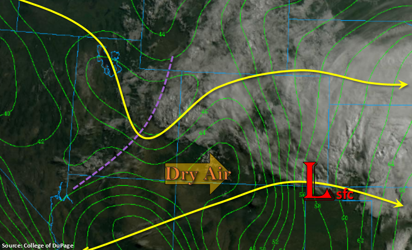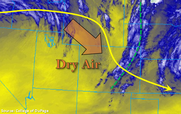 To the east, upslope flow will set off storms over the Front Range around 1PM. Additional convergence along the Palmer Ridge, due to a surface trough, will initiate some weak thunderstorms over this area as well. Expect the high-based storms to move west and then northwest with the flow aloft. Limited low-level moisture and fast steering winds will likely only produce moderate rainfall totals, so flooding is not anticipated. Over the Southeast Mountains, downsloping winds on the southwest side of the surface trough will keep rainfall limited to along and near the Continental Divide.