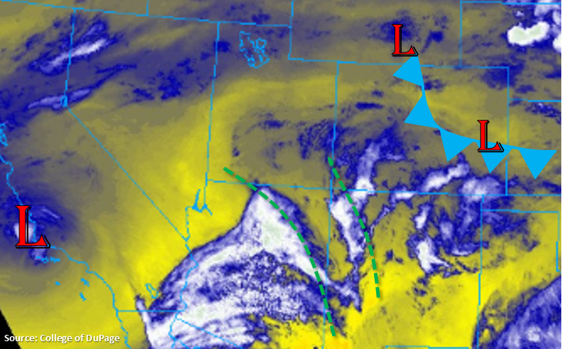 The low coming from southern CA has moved eastward and is currently over Arizona as seen in the water vapor imagery below. Throughout the day, expect the low to keep progressing eastward. This should bring continued favorable dynamics to the state for rainfall and thunderstorms in the mid and upper levels of the atmosphere. Earlier this morning, PW values at DIA were measured at 0.74 inches (which matches the record for this date, but is far from the May record of 1.14 inches). In comparison, the PW value over Grand Junction was at 0.3 inches; however there is some better moisture in the higher terrains near the Divide. Visible satellite shows heavy cloud cover and dense fog over the eastern portion of the state with cloud cover over the Central and Northern Mountains in western Colorado.
