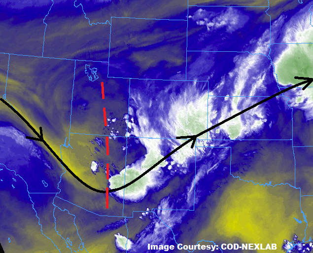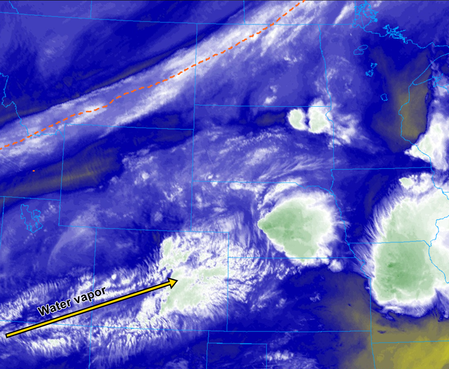 Cool morning with quite a bit of cloud cover over the state to start Labor Day. There is also some moderate rainfall (and snow at higher elevations) being reported over the San Juan Mountains with dense fog over the far eastern plains that is limiting visibility to the 0.25-0.75 mile range. This is all associated with the upper low over the Southwest Slope, which is marked in the water vapor imagery below. That circulation will slowly start moving to the northeast throughout the day and into tonight, which will help keep rainfall chances fairly widespread.