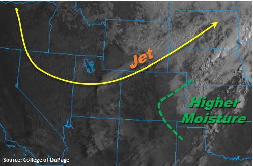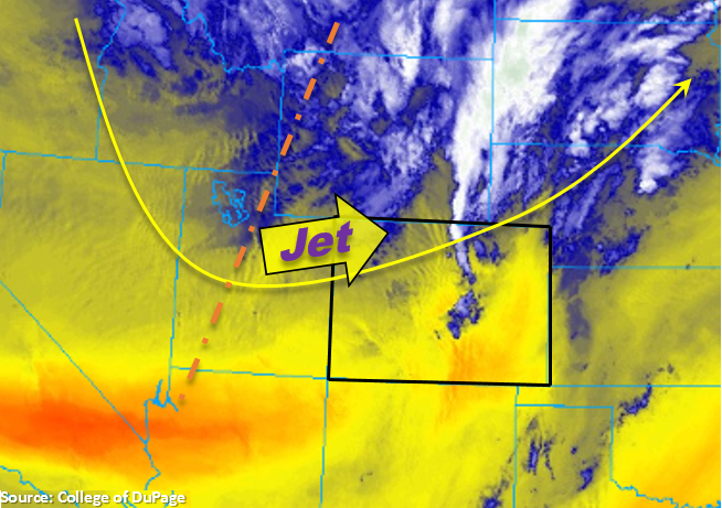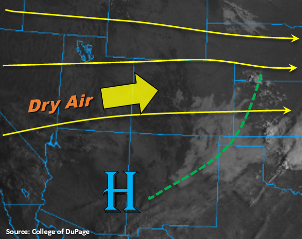 The 500mb high will continue to spin over NM today, which will keep the subtropical moisture to our south once again. Similar to the last couple of days, this will keep flow aloft west/west southwest flow and continue to entrain a drier air mass, which should keep the chance of storms low again this afternoon. A couple of shortwaves are marked in the water vapor imagery below associated with the trough that is moving over the west coast. While this may aid in a slight moisture increase, the storms that form with convergence over the Palmer/Cheyenne Ridges and extra lift from the shortwaves will likely produce some gusty winds due to the lack of low-level moisture. The shortwave over Utah is expected to help increase the upper-level clouds over the Urban Corridor, Palmer Ridge and Northeast Plains this afternoon and overnight. Over the Southeast Plains, weak convergence may spark a couple of isolated thunderstorms. With dew points below 50F, these storms will likely produce some spotty rainfall with gusty winds.
