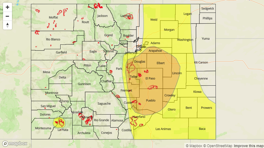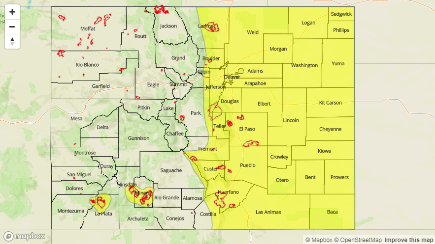 A LOW FLOOD THREAT IS FORECAST FOR PORTIONS OF THE FRONT RANGE, SOUTHEAST MOUNTAINS, URBAN CORRIDOR, NORTHEAST PLAINS, SOUTHEAST PLAINS, PALMER RIDGE, AND RATON RIDGE.