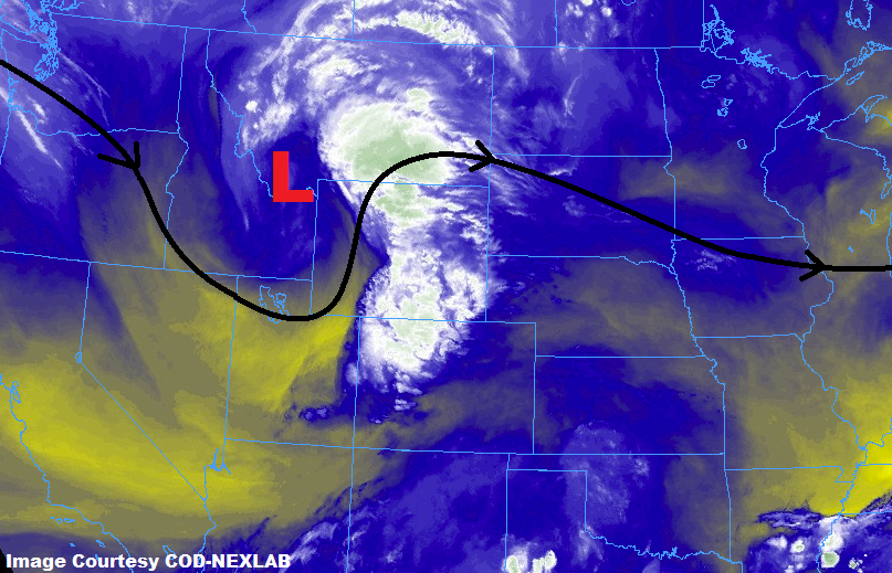 An upper-level disturbance, highlighted in the water vapor image below, will shift across Wyoming today, reaching western Nebraska by sunrise tomorrow. As it does so, it will provide the forcing for scattered showers/thunderstorms again today/tonight. In fact, an area of showers is already moving across western Colorado this morning associated with this upper-level disturbance. This shower activity will continue to move eastward, reaching the Front Range by 10-11 AM or so, and then reaching the Urban Corridor shortly thereafter. As this activity moves off the mountains, it will encounter better low-level moisture, especially east of I-25. This moisture, combined with the daytime heat and upper-level support, will result in a few strong-to-severe thunderstorms capable of heavy rainfall, hail, and strong winds.