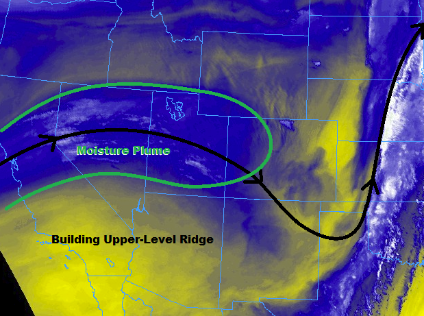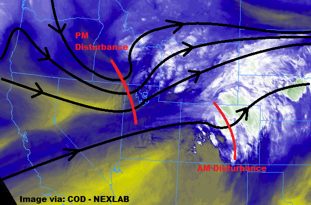 Visible satellite shows some widespread, dense fog over far Northeast Plains to start off Monday morning. Dew points in this area are already in the 60Fs this morning and should remain throughout the day. In fact, dew points today will remain above 50F over the adjacent plains of eastern Colorado. A passing shortwave trough over WY/UT will move through the state this afternoon before the ridge begins to build back over the Pacific Northwest for the rest of the week. This should arrive to the eastern half of Colorado around the same time as peak heating, which will make shower and thunderstorm coverage more widespread along the Front Range and eastern plains.