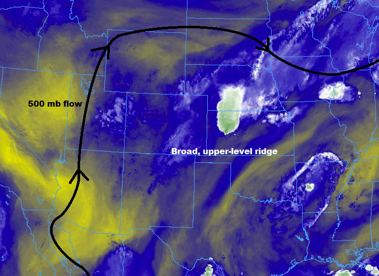 The broad upper-level ridge over the central United States will continue to retrograde west through the period, becoming centered over Colorado during the afternoon/evening. This will place Colorado under weak flow aloft, which will set the stage for slow-moving showers/thunderstorms. At the same time, deeper moisture is setting up along/east of the Continental Divide due to the combination of mid-level moisture from the east/southeast and easterly flow from the Great Plains. In combination, these two factors will allow for showers/thunderstorms with efficient rainfall production to have increased residence time over a location, enhancing the flooding threat.