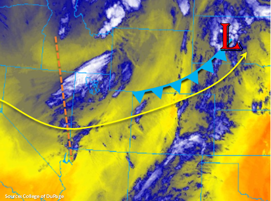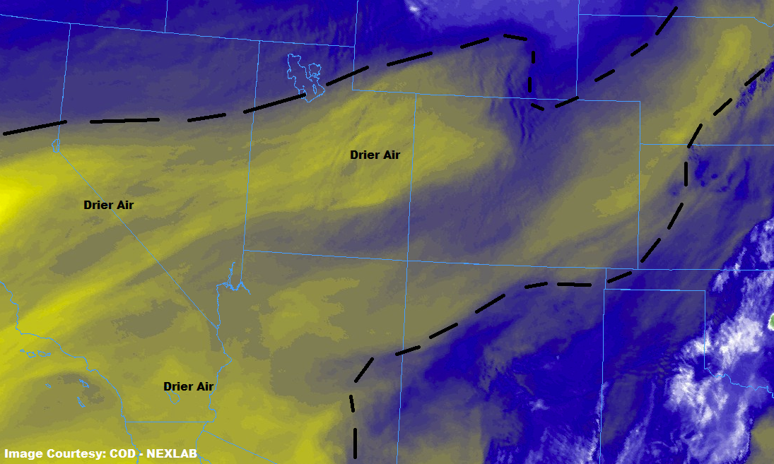 Plenty of sunshine and warmer temperatures will be the main weather story today, with highs in the 80s across the area, with a few locations ranging near 90s in the Southeast Plains. A couple isolated, high-based showers/thunderstorms will spill over areas along/near the higher terrain, south of I-70. Gusty winds and brief periods of wetting rainfall will be the main result from any activity. Maximum rain rates will be 0.25-0.5 inches/hour.