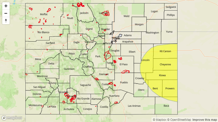 Over the Northeast Plains, behind the cold front, dew points are increasing into the mid 50Fs. A bit of this moisture will mix out this afternoon, but there is still enough in place for moderate rainfall this afternoon. The front is expected to stall out over the Palmer Ridge later this morning, so these higher dew points won’t quite reach the Southeast Plains. This will make showers and thunderstorms more isolated over the Southeast Mountains. Behind the front, upslope flow will increase as will thunderstorm coverage over the Front Range. More storms are forecast to form over the Palmer and Raton Ridges later this afternoon. Storm motion will be to the northeast at 15-20 knots, so flooding is not a concern. Threats today include gusty winds, dry thunderstorms and small hail. Storm activity over the eastern plains should end by 11PM. There is no flood threat today.