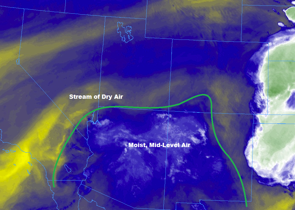 Dry thunderstorms this afternoon will lead to critical fire conditions as they will produce lightning and gusty outflow winds (45-60 mph range). Thus, a Red Flag Warning is in effect until 9PM tonight. Max 1-hour rain rates this afternoon will be in the 0.05-0.15 inches/hour range with the highest rain rates over the southern/central mountains. After 10PM, the low levels will begin moisten as the subtropical moisture reaches the southwest corner of the state. This will increase rainfall coverage and intensity overnight in western Colorado with the most widespread activity over the San Juan Mountains. Totals over the San Juans by tomorrow morning will be in the 0.25-0.4 inch range favoring the south facing slopes. Flooding is not expected overnight, but please tune back into the FTB tomorrow morning as a Flash Flood Watch has been issued for Saturday over the San Juan Mountains and 416/Burro burn scars.