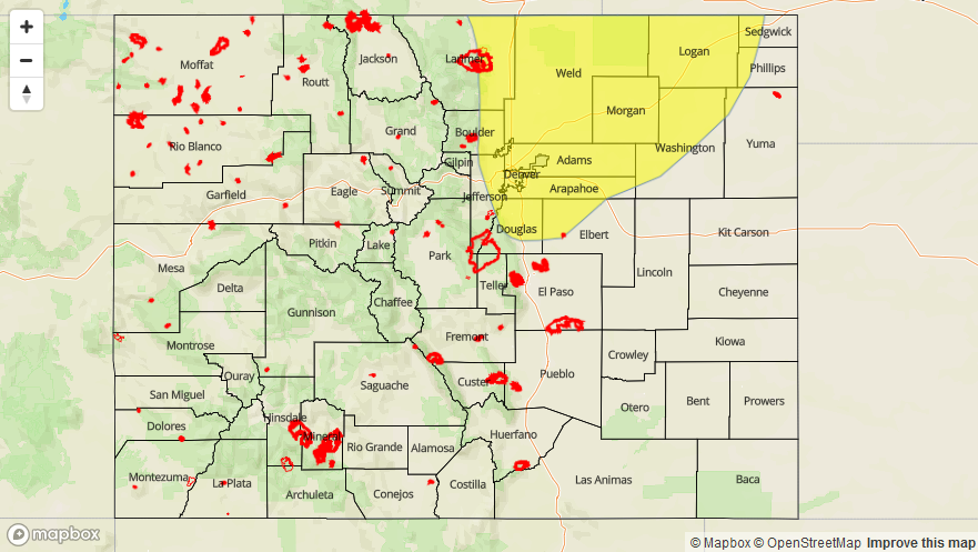 A LOW FLOOD THREAT IS FORECAST TODAY FOR PORTIONS OF THE FRONT RANGE, URBAN CORRIDOR, PALMER RIDGE, AND NORTHEAST PLAINS.