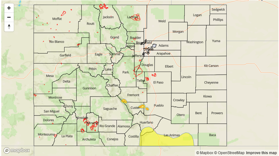 There is a chance for a few stronger storms to form along the cold front later this afternoon and evening as well as with upslope flow in climatologically favored regions. The best chance for showers and thunderstorms is along the Palmer Ridge, Southeast Mountains and San Juan Mountains. Storm coverage will increase over the high terrains when compared to the last couple of days. With Precipitable Water (PW) values in the 0.6 – 0.7 inch range, storms are expected to be short-lived and have limited rainfall totals. Gusty winds may accompany the stronger storms that form, especially along the cold front. The passage of the cold front later this evening and overnight will reduce low temperatures and bring relief from the high temperatures tomorrow.