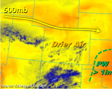 Another beautiful day of weather is expected statewide. The upper-level ridge continues to reside just north of Colorado. Light westerly flow under the ridge will help continue to dry out the moisture in the low and mid-levels of the atmosphere. Precipitable Water (PW) at Denver and Grand Junction this morning was only 0.58 inches. PW is expected to remain under 1 inch across the state today, which will give us another break from heavy rainfall.