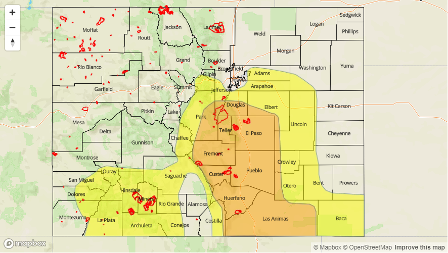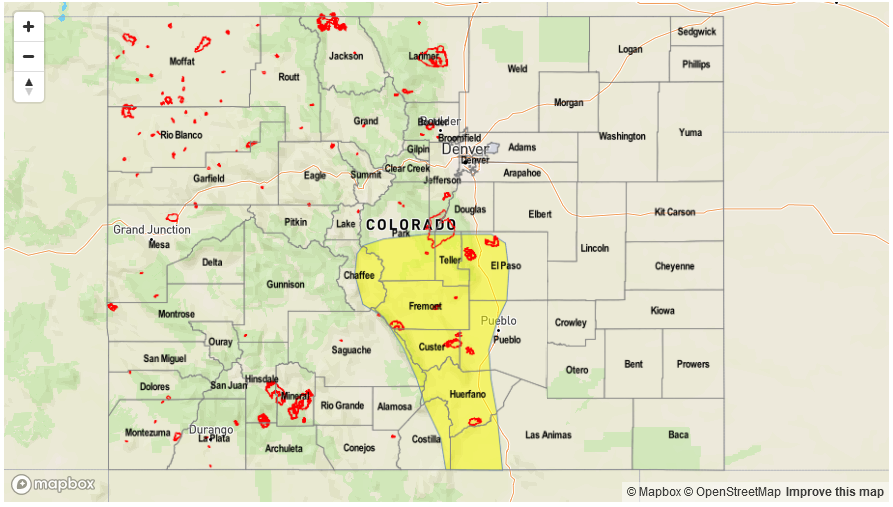— LOW/MODERATE flood threat for portions of the Front Range, Urban Corridor, Palmer Ridge, Central Mountains, Southeast Mountains, Southeast Plains, Raton Ridge