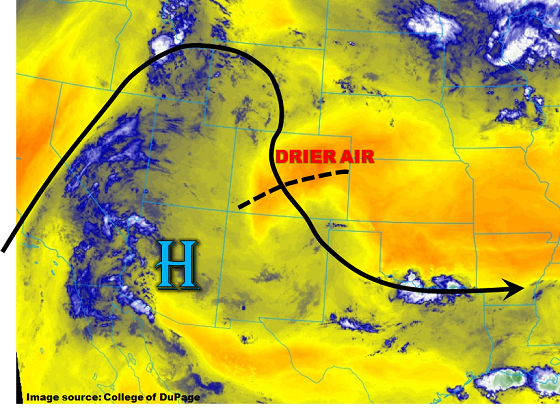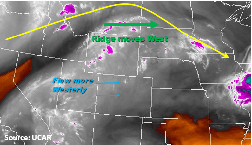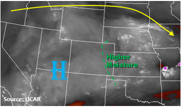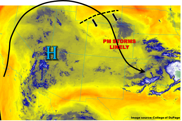 The upper level ridge shifts more to the east today while also becoming more zonal this afternoon. This westerly flow will allow a bit more mid-level moisture to build up over the high country west of the Continental Divide. Some embedded vorticitiy maximums in the zonal flow aloft will help produce a little extra lift over the northern portion of the state. Storms will develop with upslope flow early this afternoon over the higher terrain and should be more widespread in coverage than yesterday. Precipitable water values at Denver and Grand Junction this morning were 0.69 inches and 0.84 inches, respectively. Moisture is only expected to increase a little throughout the day, so all storms that form will have hourly precipitation rates under flood threat criteria with the main threat being small hail and gusty winds. Over the NE corner of the state, a weak cold front will set up this afternoon. This could help support some isolated severe weather in the Northeast Plains. These isolated storms could produce hail up to 1 inch diameter, wind gusts up to 60 mph and 1-hour rain rates up to 1 inch.