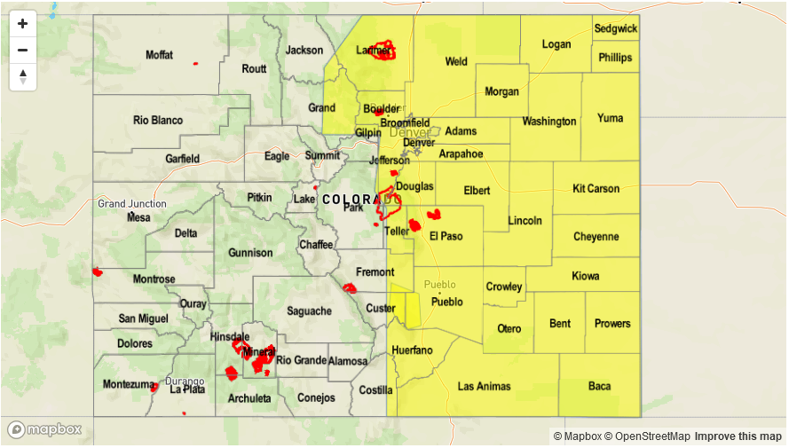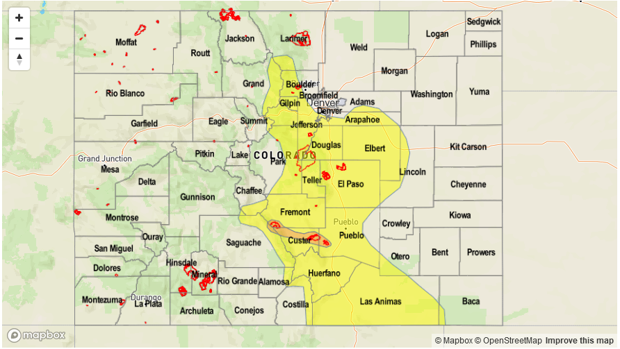 Sunny and then becoming partly cloudy with storms forming over the high country early this afternoon. Storms should be more widespread than yesterday with the main threat being gusty winds, small hail and lightning. A weak front will be positioned over the Northeast Plains near the NE border that may support some isolated severe storms later this afternoon. Max 1-hour rainfall rates of 0.75 inches are expected over the mountains. 1-hour rain rates over the Northeast Plains will be up to 1 inch. Flooding is not expected today.
