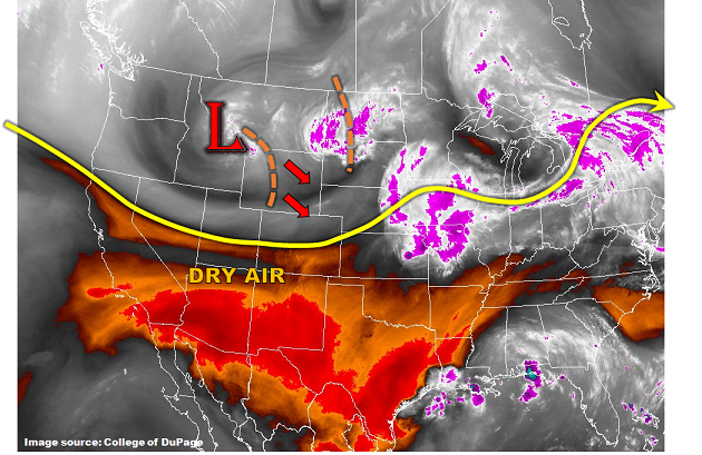 West of the 40°F dewpoint line, and over the mountains especially, shower/thunderstorm activity will produce mainly light rain and gusty winds due to the same aforementioned “Inverted-V” atmospheric profile. The main threat will be the potential for dangerous cloud-to-ground lightning with thunderstorms, so remember that “if thunder roars, go indoors.”