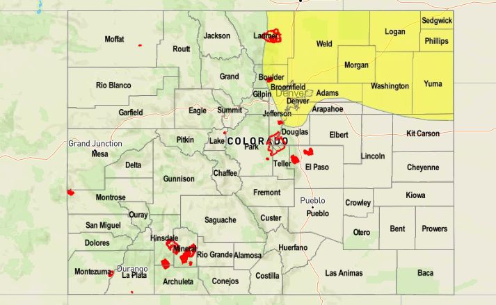 Yesterday’s large precipitation totals have caused many creeks, streams and even larger rivers such as the South Platte and Arkansas to swell. Fortunately, this morning’s analysis indicates that all river crests over the next 24-48 hours are expected to stay below the Minor flood stage level. Thus, we do not expect substantial riverine flooding though low lying and poorly drained areas in the Front Range may continue to have standing water for the next day or two.