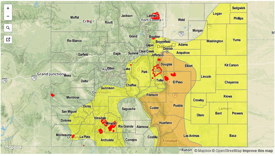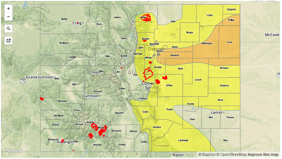 Front Range, Urban Corridor, Palmer Ridge, Northeast Plains, Southeast Plains:
