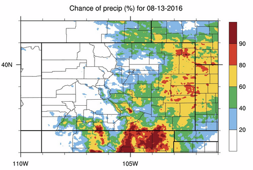Timing: 11 AM – 10 PM, with a couple isolated showers continuing into the morning hours over the higher terrain of southwestern Colorado
