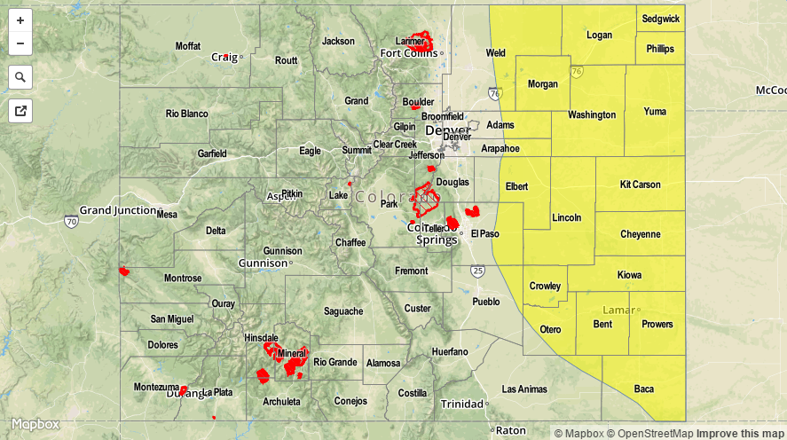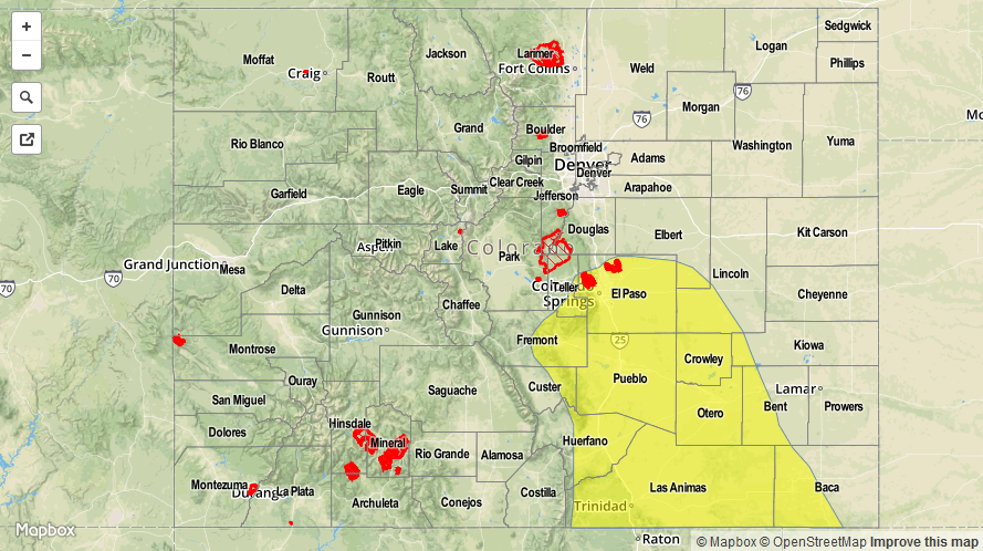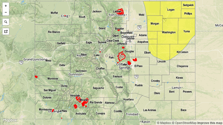 A LOW FLOOD THREAT HAS BEEN ISSUED FOR PORTIONS OF THE URBAN CORRIDOR, PALMER RIDGE, SOUTHEAST PLAINS, RATON RIDGE, SOUTHEAST MOUNTAINS, AND FRONT RANGE.