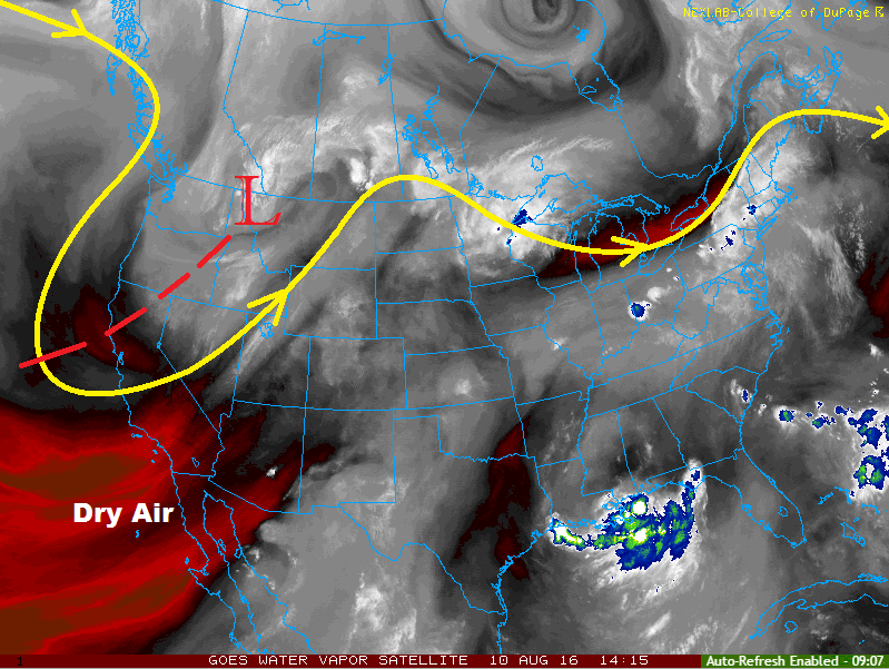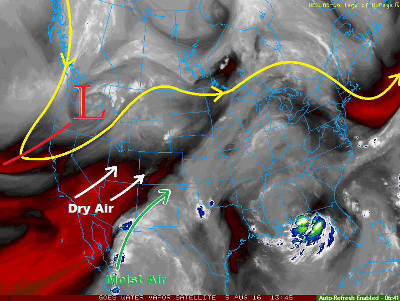 A couple isolated showers/weak storms are expected across the higher terrain near the Continental Divide. Otherwise, today will be mostly sunny and dry, with high temperatures a few degrees cooler than yesterday. Maximum rain rates from any activity will be less than 0.2 inches/hour.