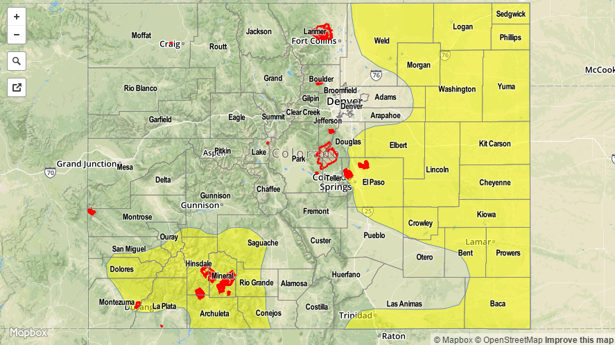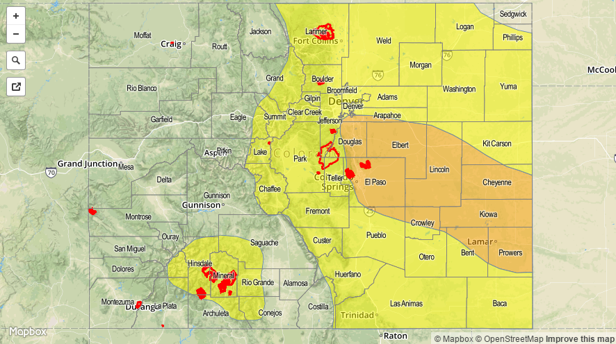 Front Range, Urban Corridor, Palmer Ridge, Raton Ridge, Southeast Mountains: