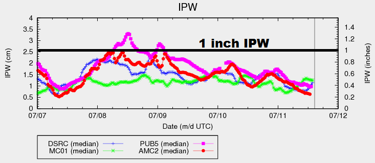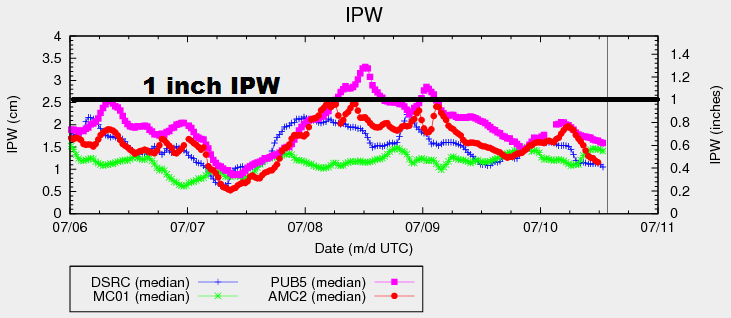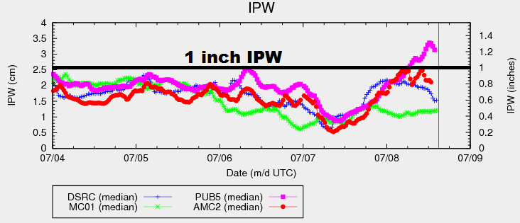 These storms will mainly be garden variety, with a strong/marginally severe thunderstorm mixing in. Deep moisture is still lacking, shown well in the IPW graph above. This will keep storms from producing rain rates capable of flash flooding; thus, no flood threat issuance. For more information on rain rates and timing, please see the zone specific discussion below.