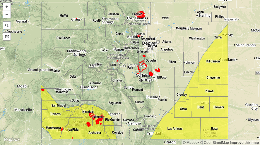 A LOW FLOOD THREAT IS FORECAST FOR PORTIONS OF THE SOUTHWEST SLOPE, SAN JUAN MOUNTAINS, RATON RIDGE, SOUTHEAST PLAINS, PALMER RIDGE, AND NORTHEAST PLAINS REGIONS.