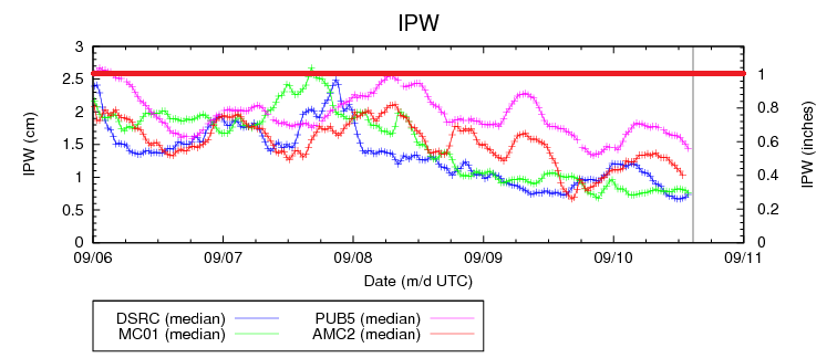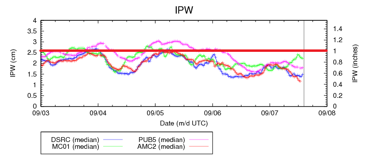 Along and east of the Front Range and Southeast Mountains, a cool front lurks and will pass through the state through this evening, entering NM by midnight. As the front pushes through, a few isolated thunderstorms will be possible across the Northeast Plains, Palmer Ridge, and Southeast Plains. Behind the front, upslope flow will develop, bringing in low clouds, showers, and a couple of weak thunderstorms, with best chances across the Urban Corridor, Palmer Ridge, and western portions of the Southeast Plains/Northeast Plains/Raton Ridge. Generally light rain will result from activity today/tonight as moisture will have to rebound from morning values in the 25th percentile at Boulder and Grand Junction (see IPW graph above). For more information on timing and rain rates, please see the zone-specific discussions below. Otherwise, the primary effect of the cool front will be high temperatures a few degrees cooler than yesterday.