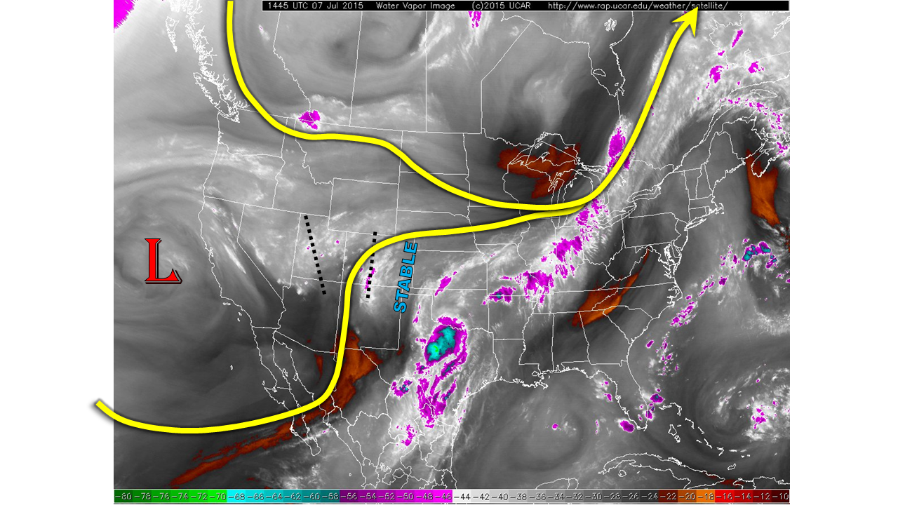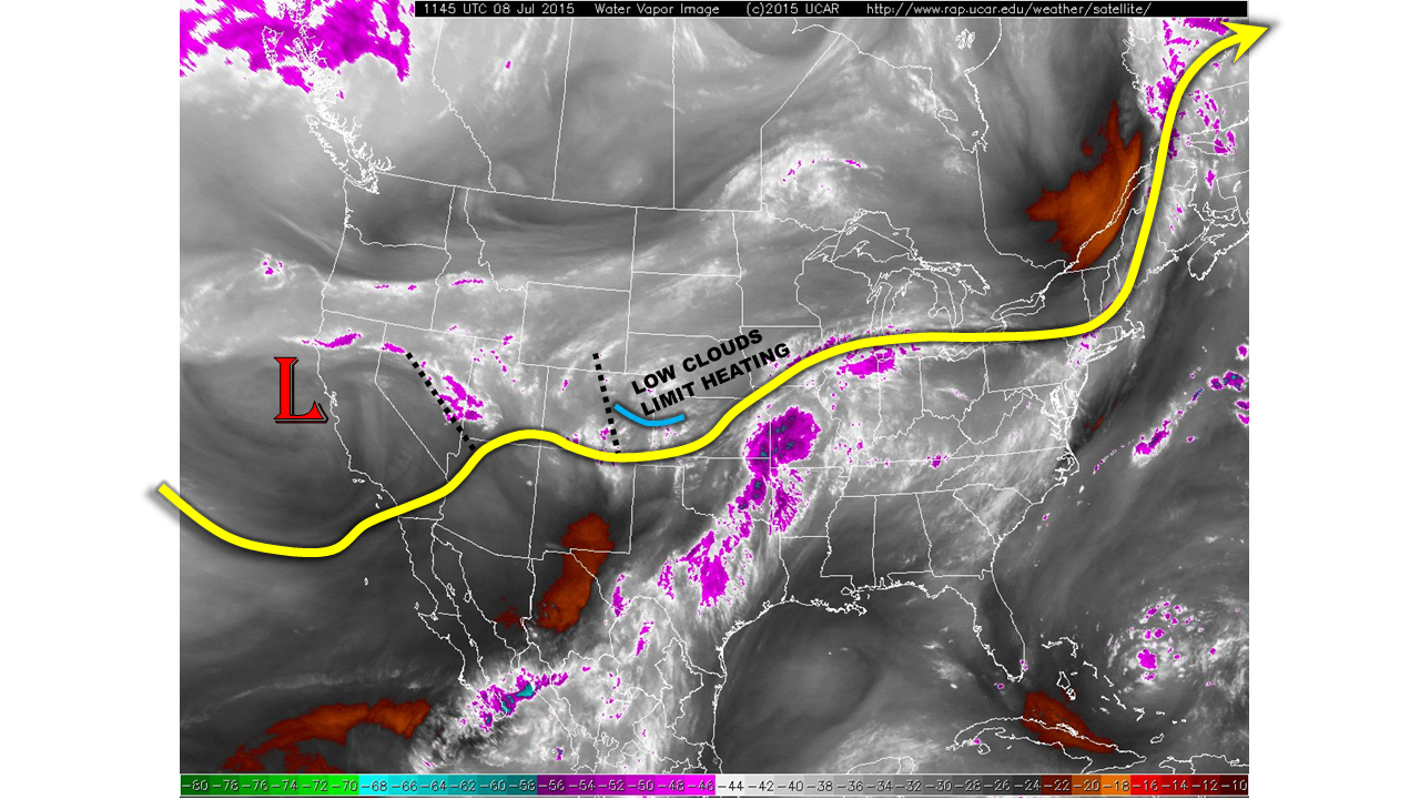 As the disturbance currently over the state treks slowly eastward, heating of the day will cause plenty of instability to fuel thunderstorm activity. The highest threat today will be over the Palmer Ridge and extending towards the Kansas border. A Moderate flood threat has been posted for the area. Low cloud activity and a stable atmosphere will continue to limit rainfall chances in the Northeast Plains for the second day in a row. In northwest Colorado, a Low flood threat is in place for short-term heavy downpours that may cause brief flash flooding, mud flows and debris slides. West of the Divide, activity will subside around sunset. East of the Divide, storms may persist through midnight.