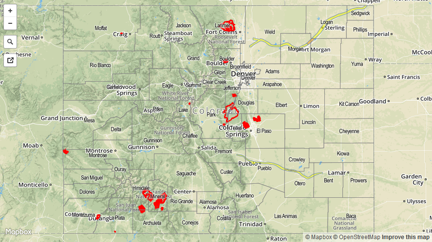 Front Range, Urban Corridor, Palmer Ridge, Southeast Plains, and Northeast Plains, Southeast Mountains, and Raton Ridge: