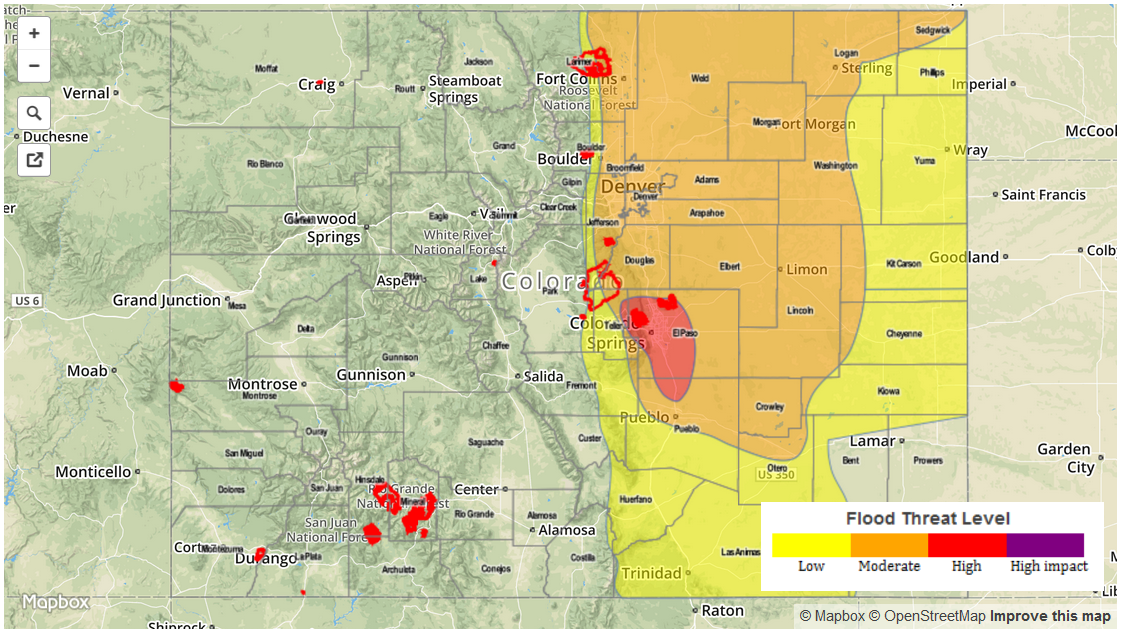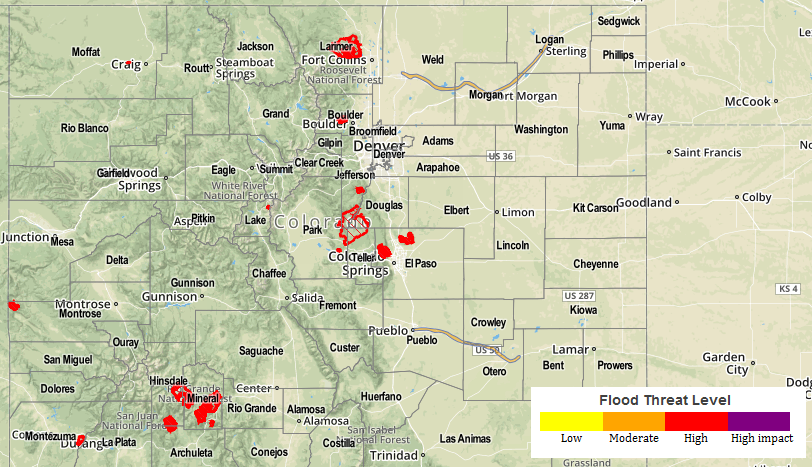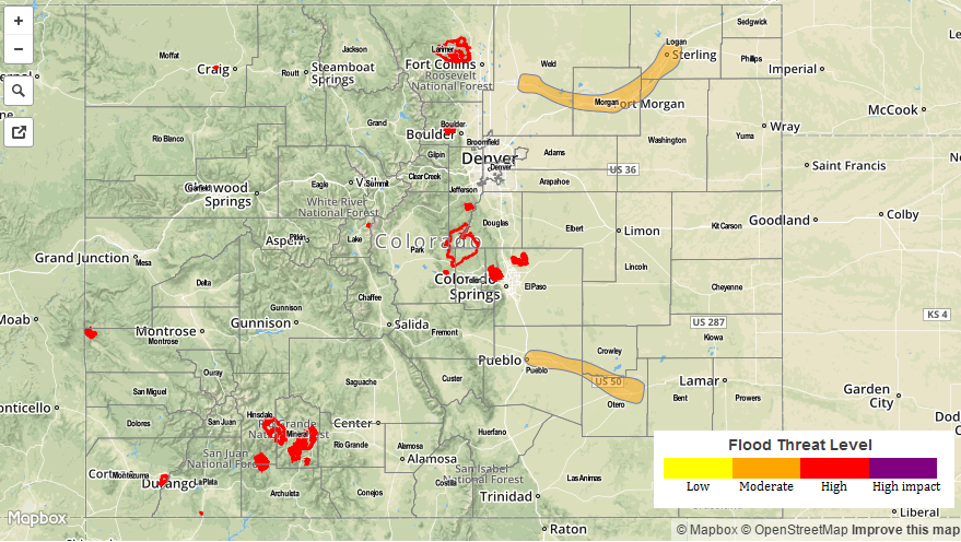 A MODERATE FLOOD THREAT HAS BEEN ISSUED FOR THE CACHE LA POUDRE/SOUTH PLATTE RIVER FROM GREELEY THROUGH STERLING, AND FOR THE ARKANSAS RIVER FROM PUEBLO THROUGH LA JUNTA.