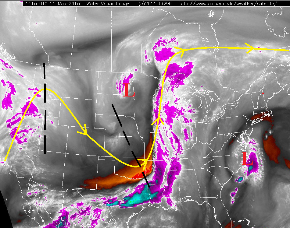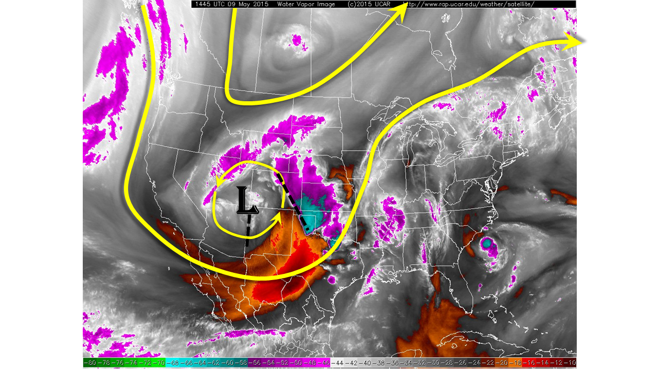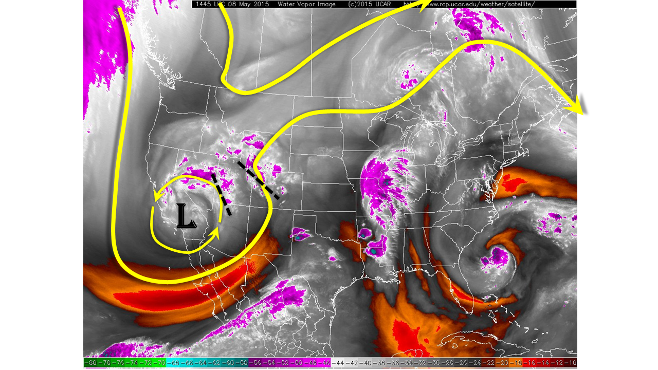 After the last 10 days of rain, it feels good to say that today will be cool and dry with mostly sunny skies as high pressure builds over the region. Aside from continued flooding along the South Platte River and Arkansas River outlined above, swollen streams will recede and standing water will dry up as the sun and westerly winds do their part. The water vapor image below really tells the whole story today; Colorado is positioned in a region of drier air and subsidence between the upstream ridge and downstream trough. This means that on the large-scale, conditions are very favorable for sunny skies. At the surface, high pressure continues to build across the state, with very little moisture left behind as dewpoints are in the 20s and 30s. The only exception to all of the sunshine and dry conditions will be a few light showers possible across the highest terrain, owing to the mountains natural ability to force weak vertical motion today. All precipitation totals should be less than 0.1 inch. Otherwise, mostly sunny skies are in store for Colorado.